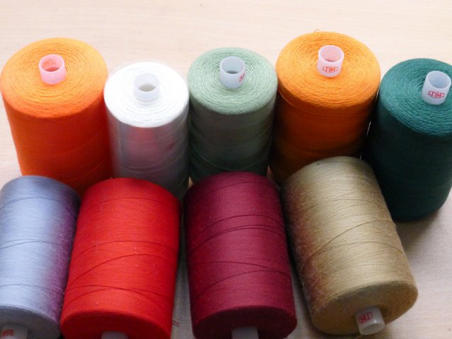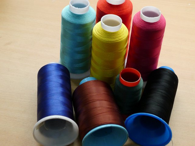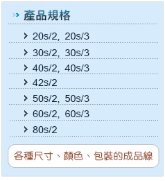 我們使用的原料是”縫紉線型滌綸短纖維,1.2Dx38mm,有光縫紉線”。 我們可以依客戶需求製作各種不同尺寸、顏色、包裝的成品線,如:5000碼/平頭管、繡花管;10000米/平頭管、繡花管…等等。